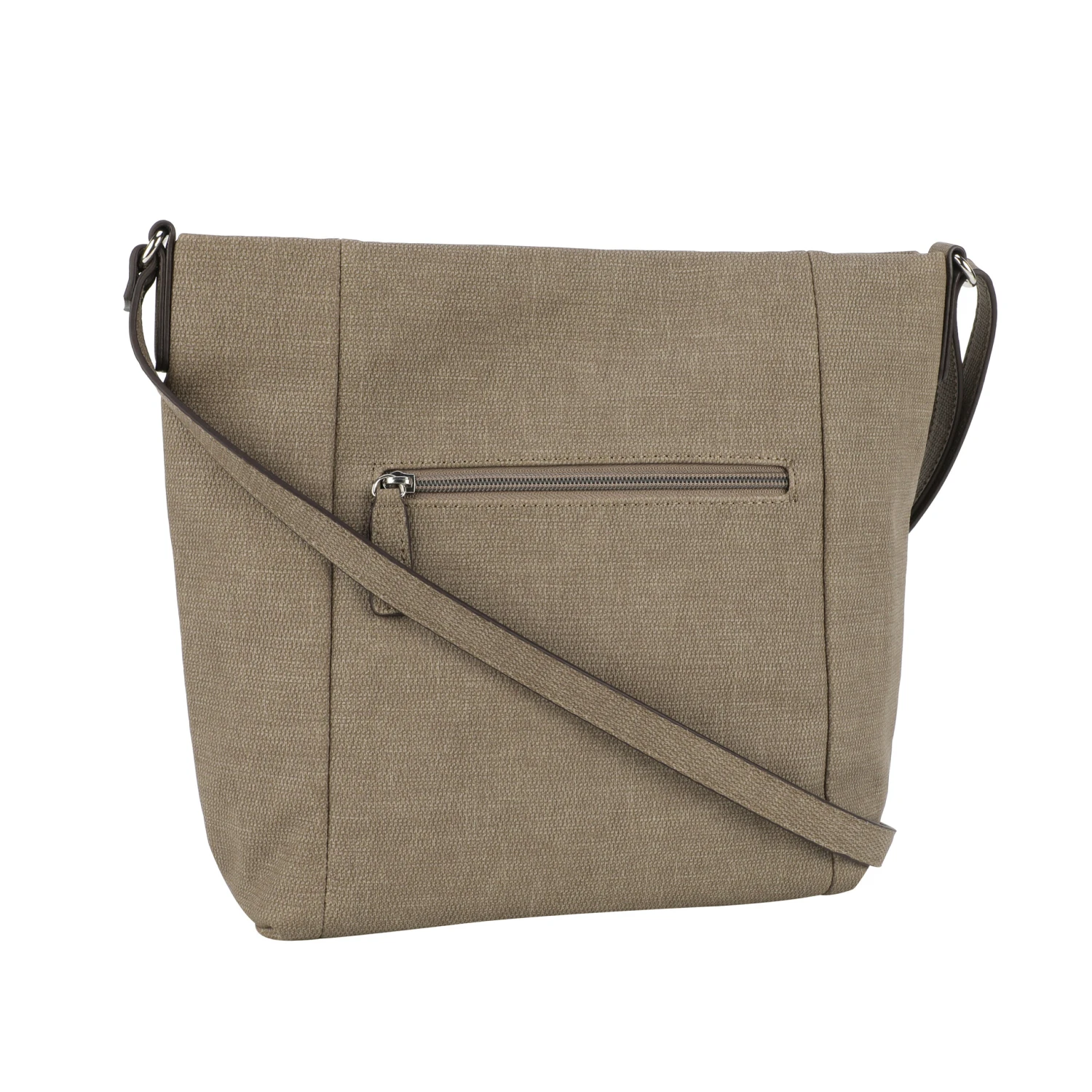 Außen: * Obermaterial aus Kunstleder * schließt mit Reißverschluss * verstellbarer und abnehmbarer Schultergurt (Länge ca. 68 cm) * Reißverschlussfach auf der Rückseite * ein Steckfach Innen: * Innenfutter aus Polyester * ein Hauptfach * ein Reißverschlussfach * zwei Steckfächer