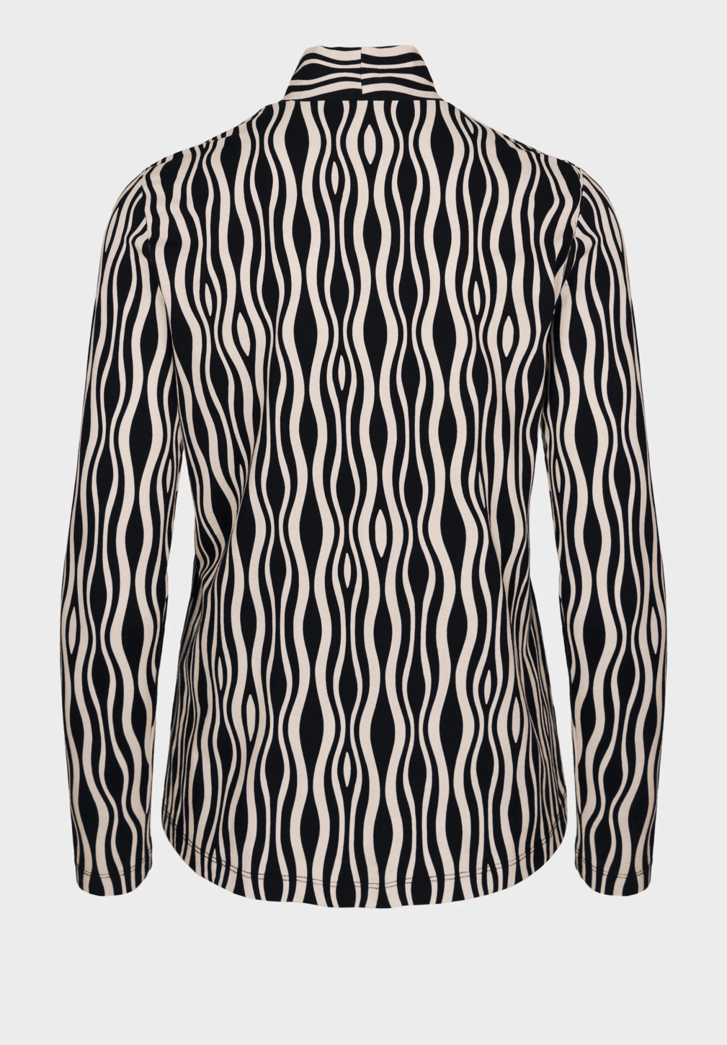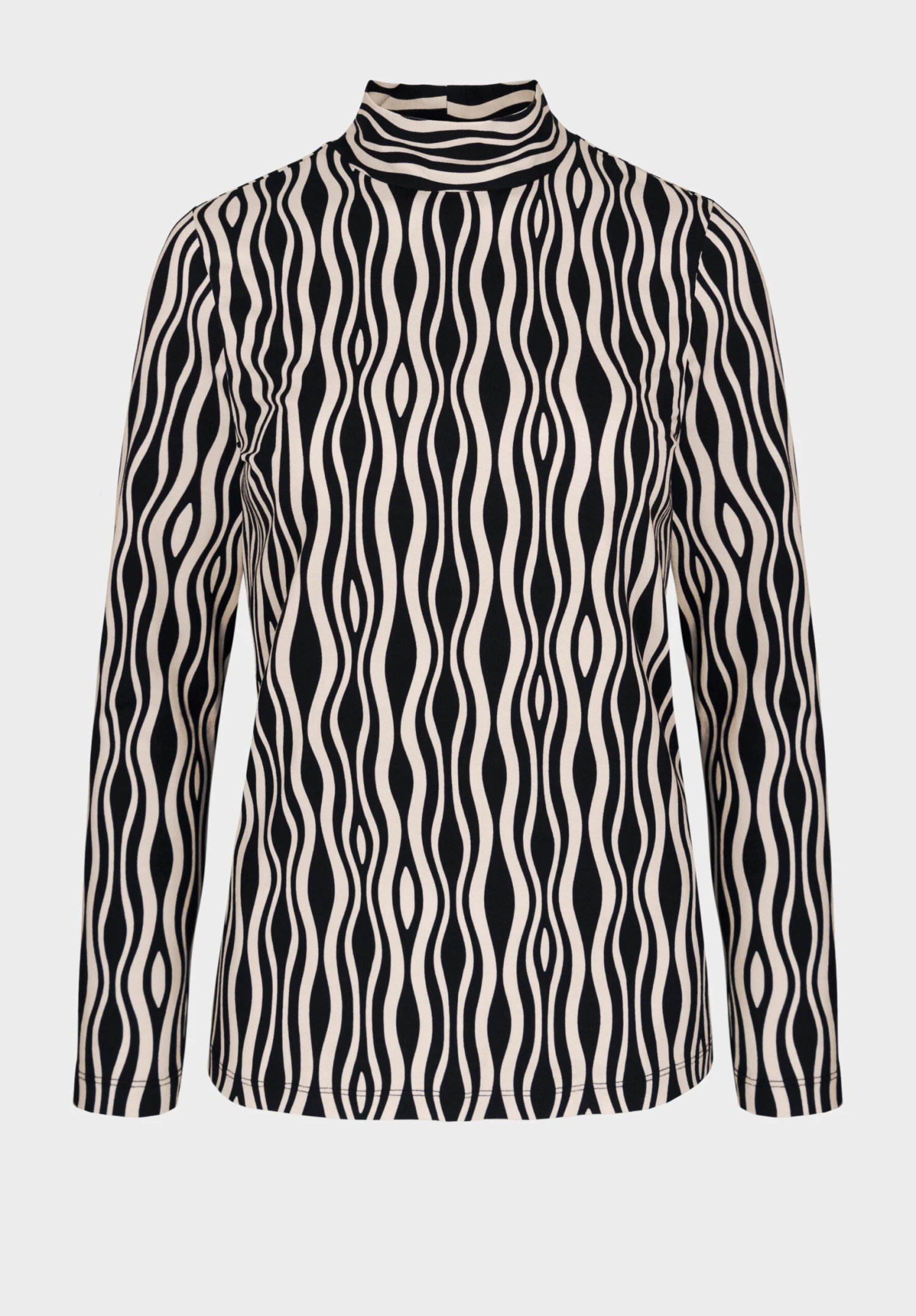 Ready to wear! Unser neues Langarmshirt Greta überzeugt mit seinem tonigen Graphic-Print. Der hochwertige Viskosemix mit Elasthan verleiht dabei ein angenehmes Tragegefühl und der leicht höhere Ausschnitt mit dem dezenten Turtle-Neck runden den coolen Look des gerade geschnittenen Langarmshirts ab. Damit kann Greta ganz leicht zu Jeans und Boots für den Alltag oder etwas schicker mit Hose und Blazer gestylt werden.
