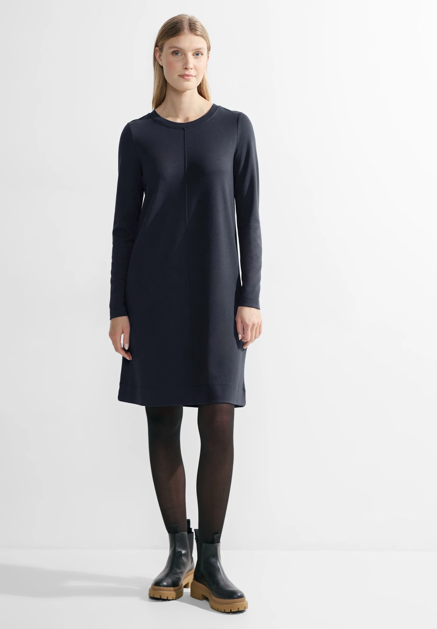 CECIL Kleid, Jersey, gerippter U-Boot Ausschnitt, Langarm, Unifarbe, dekorative Naht