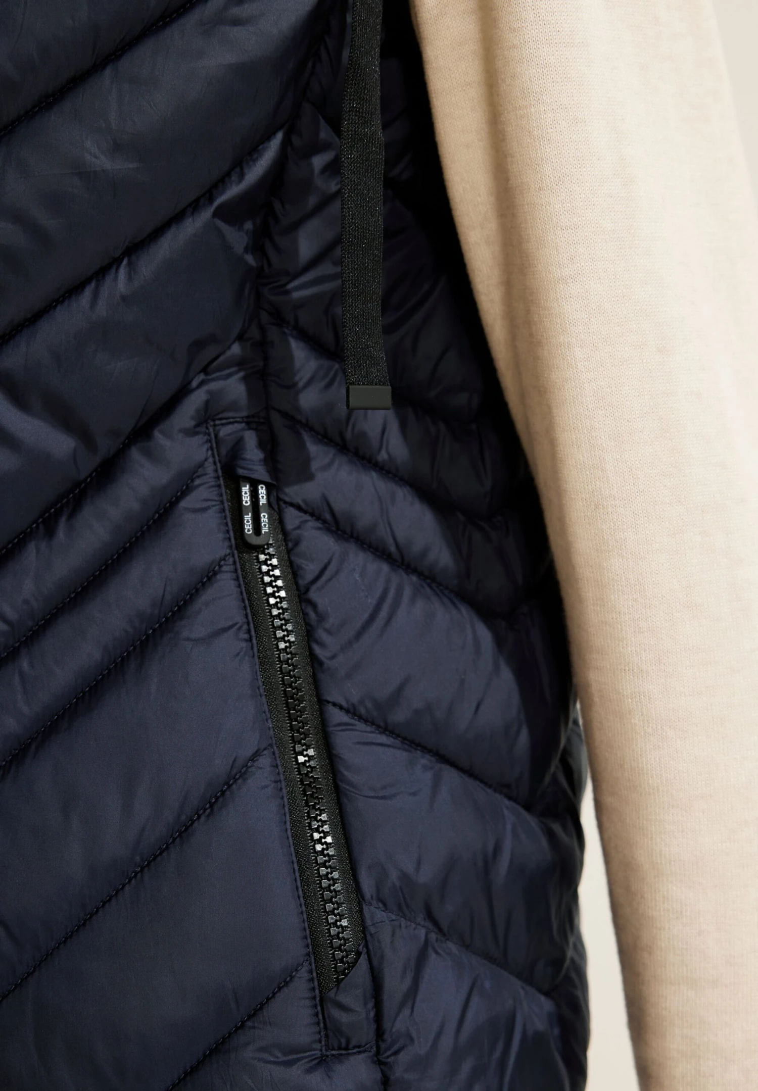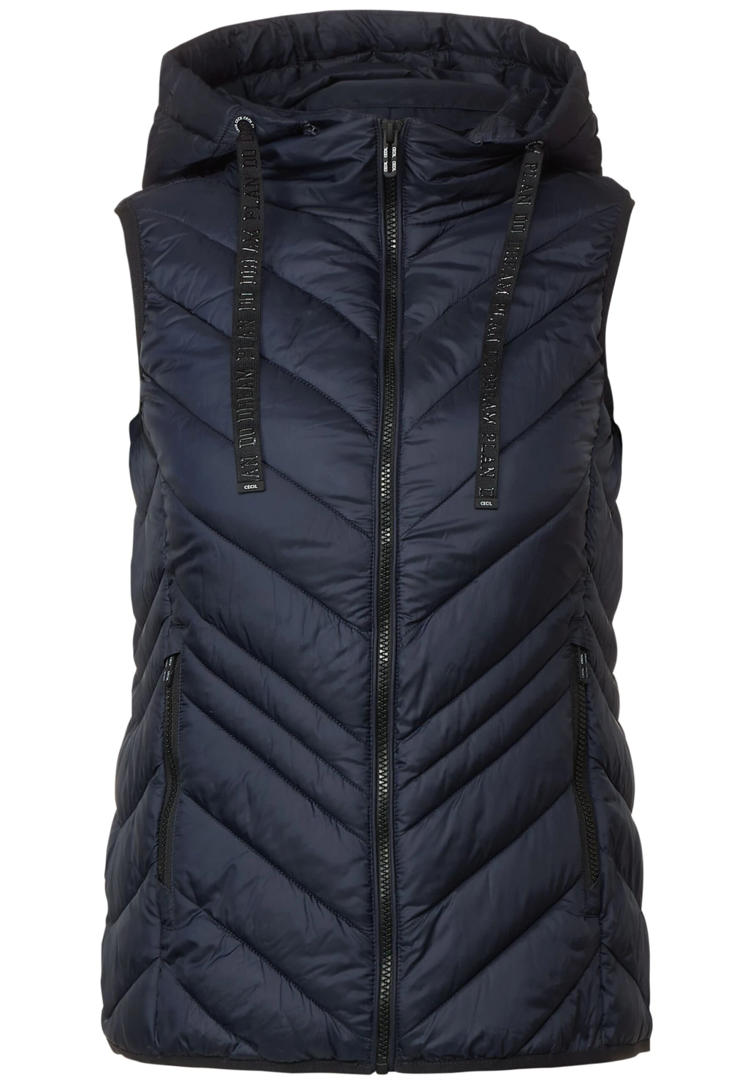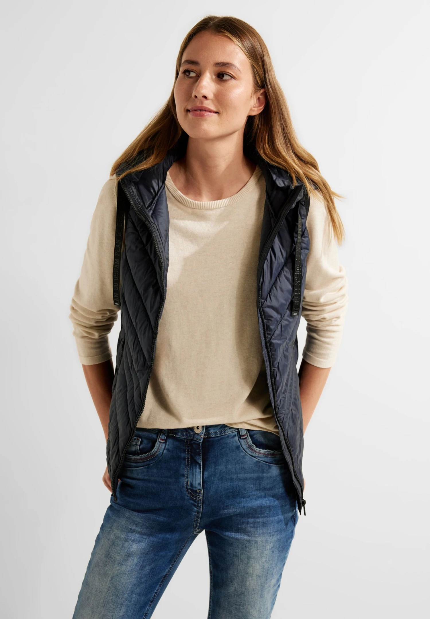 Perfekt für jeden Tag! Diese Damen Steppweste von CECIL mit abnehmbarer Kapuze, Zippertaschen und Frontreißverschluss ist ein vielseitiges Kleidungsstück, das über mehrere Saisons getragen werden kann. Die Damenweste vereint Komfort und Stil und ist ein praktischer Begleiter für Ihren Alltag. Die kontrastfarbenen Details sind tolle Hingucker des ansonsten unifarbenen Looks.