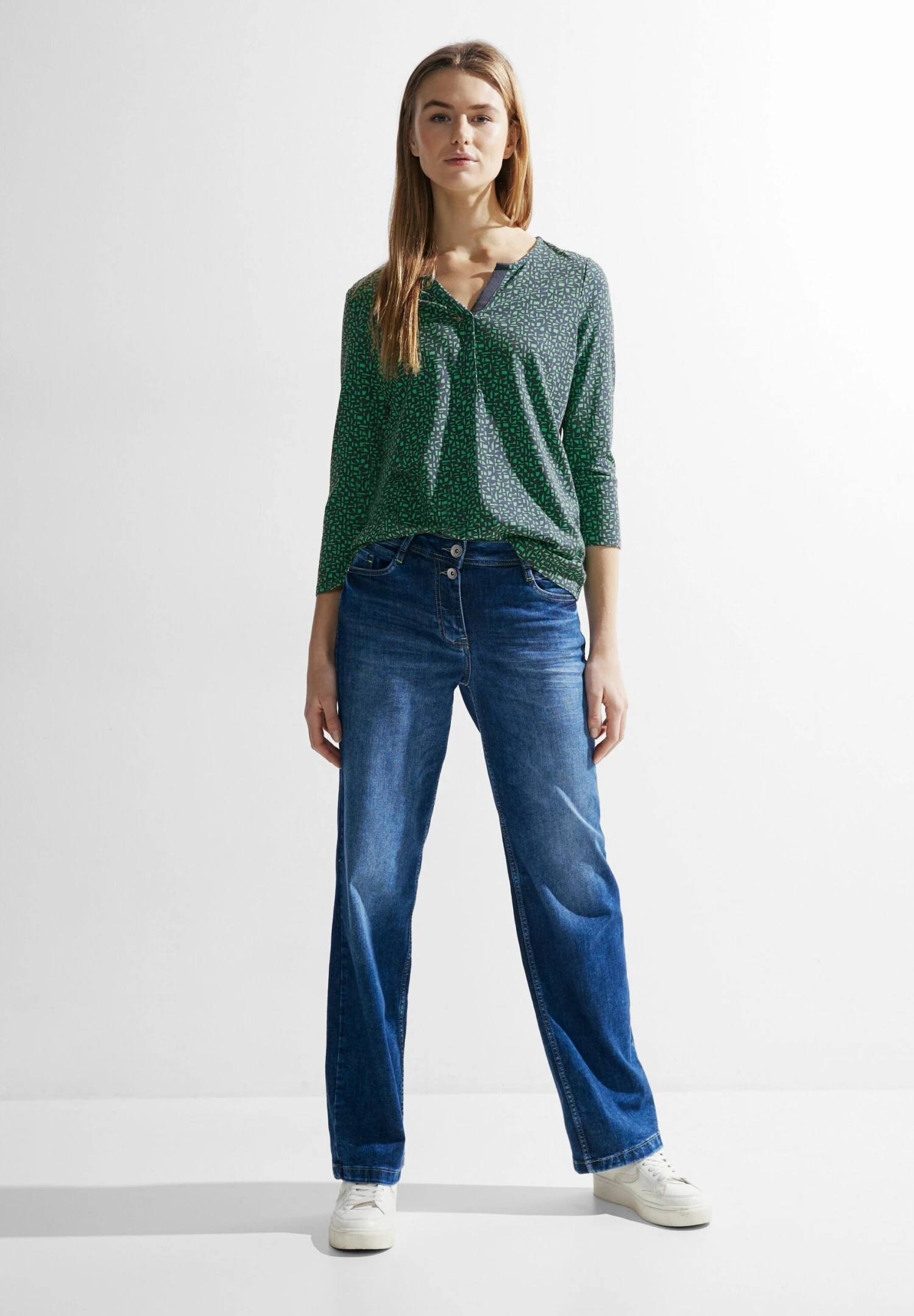 Das Damenshirt von CECIL mit 3/4 Arm und geschlitztem Rundhalsausschnitt verleiht deinem Look eine stilvolle Note. Das Minimalmuster und das Paspelband verleiht dem Tunikashirt eine besondere Optik. Dank des angenehmen Baumwoll-Modal Mixes ist es ein komfortabler Begleiter für den Alltag.