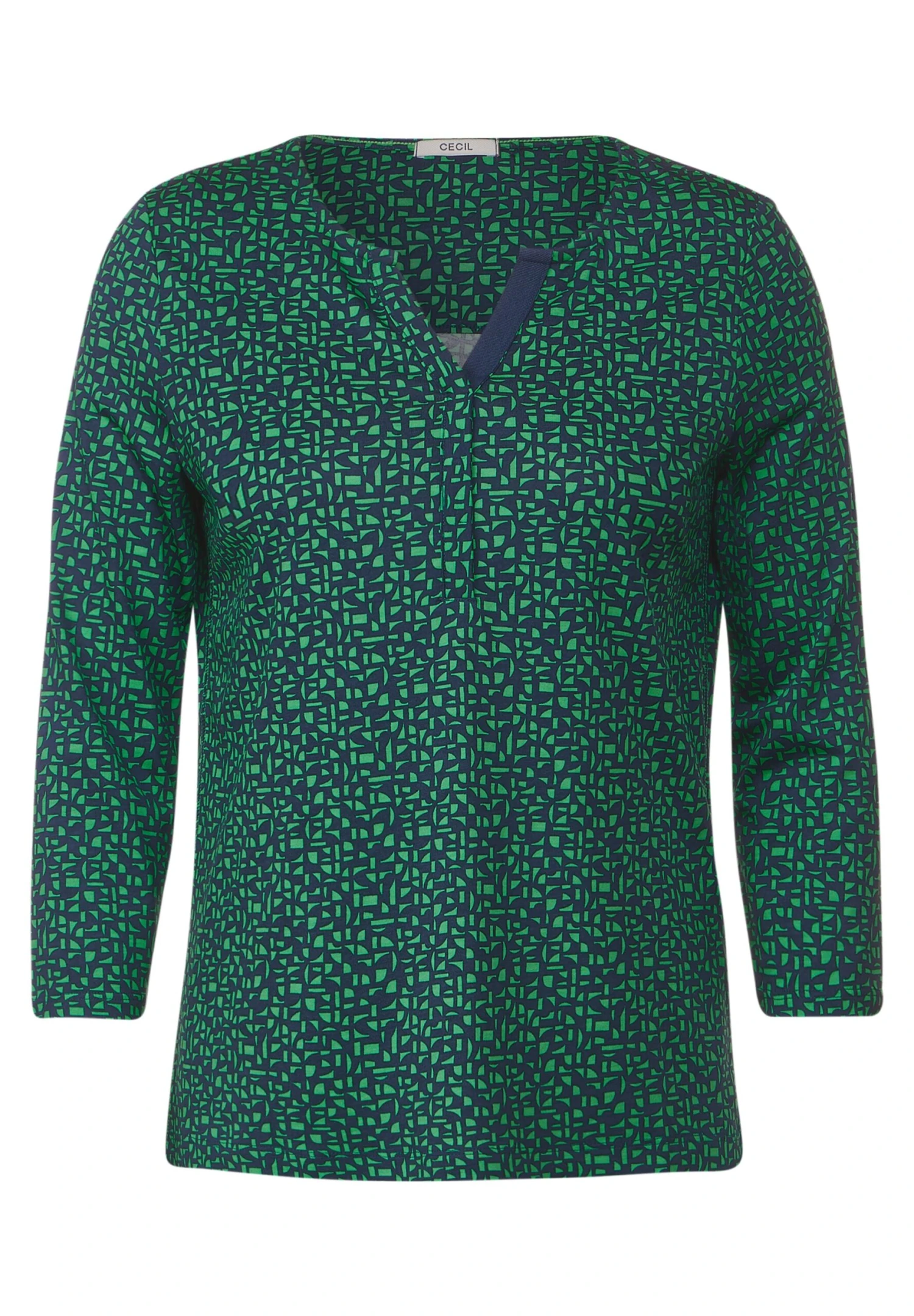 CECIL Damenshirt, Tunikastyle, Minimalmuster, geschlitzter Rundhalsausschnitt, zweifarbig