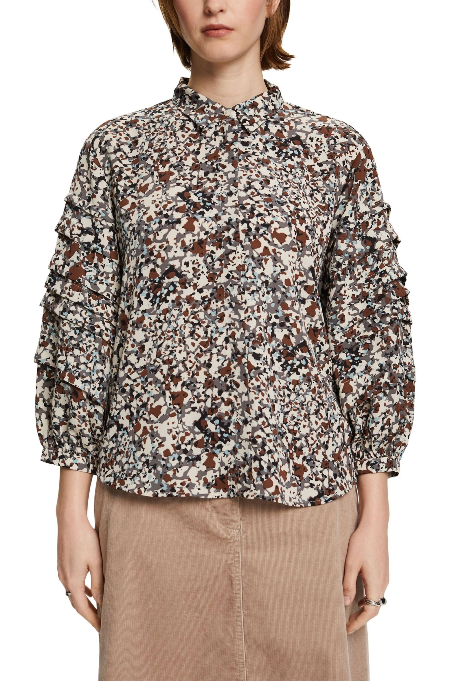 * Pflegeleichter Stoff aus recycelten Materialien * Allover-Print * Umlegekragen * Verdeckte Knopfleiste * Passe auf der Rückseite * Weite Ärmel mit dekorativen Abnähern und Raffungen * Geknöpfte Manschetten * Lockerer Oversize-Schnitt