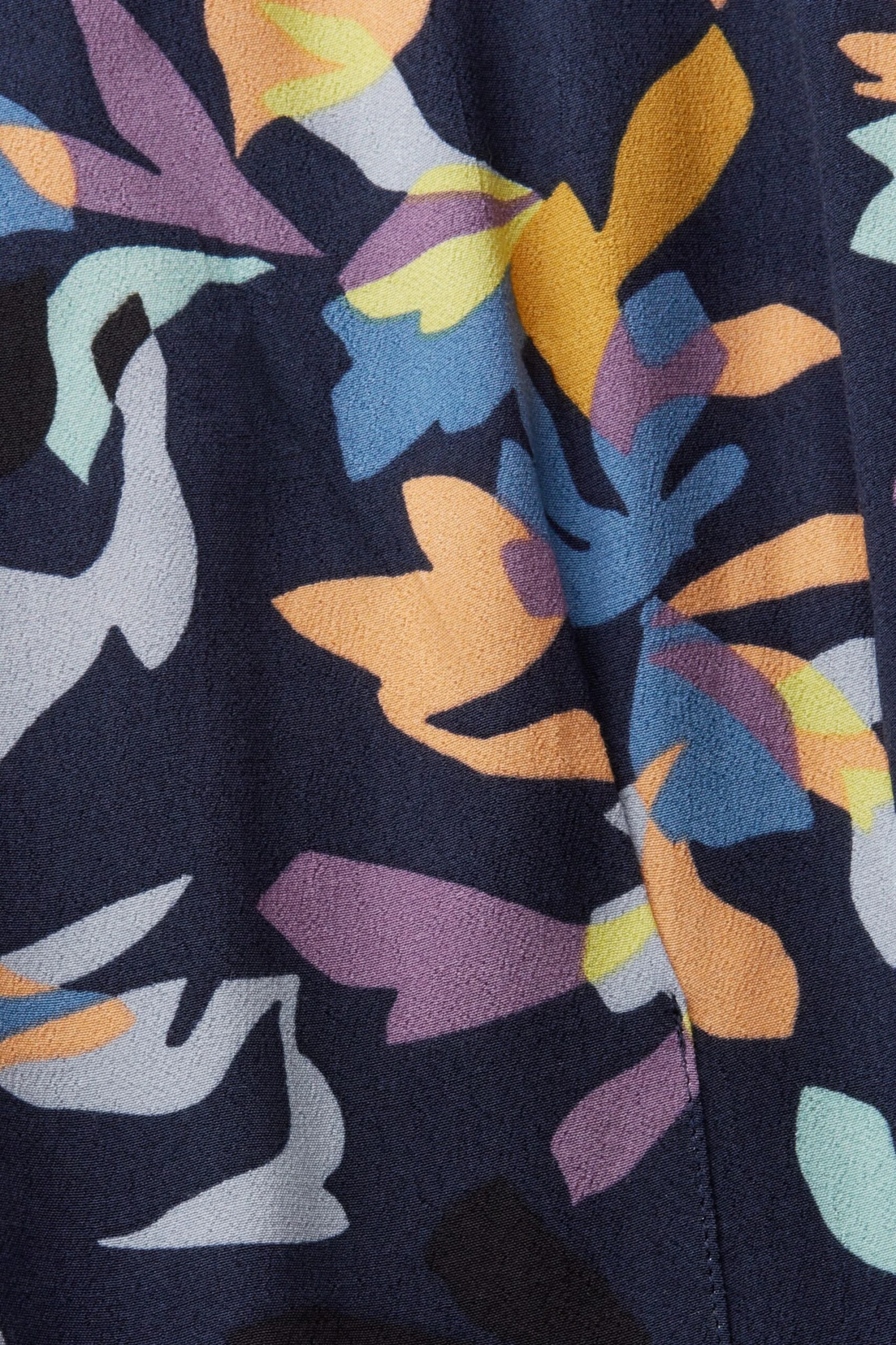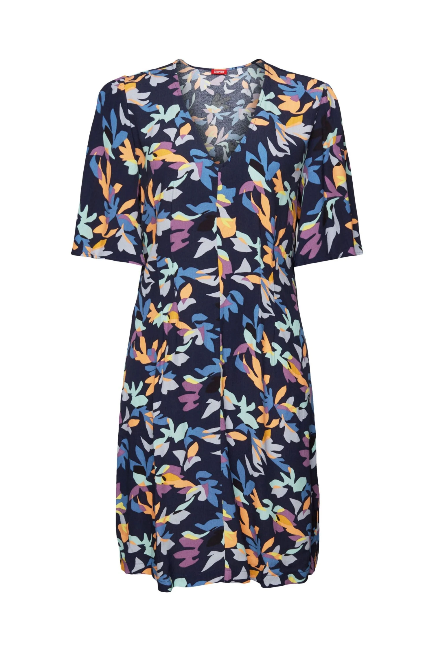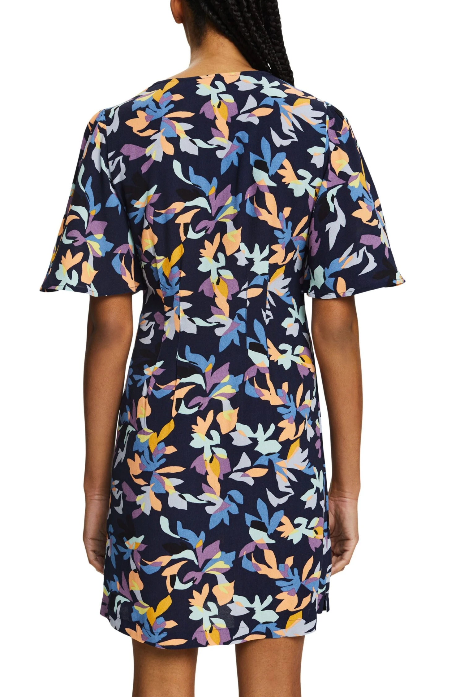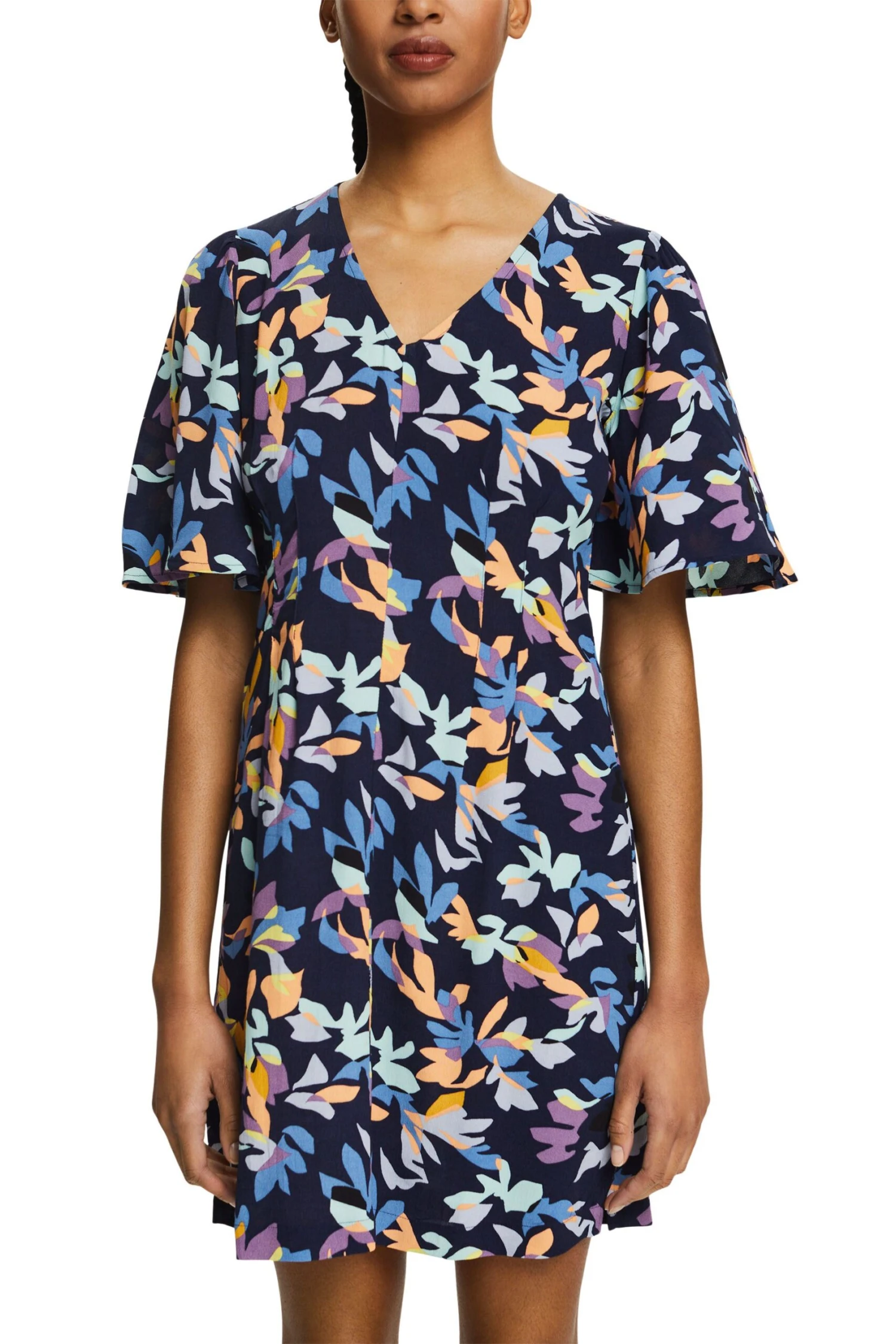 * Fließendes Material aus Viskose mit LENZING™ ECOVERO™ Viskose * LENZING™ ECOVERO™: Viskose-Fasern, die aus nachhaltigem Holz und Zellstoff gewonnen werden und aus zertifizierten und kontrollierten Quellen stammen – atmungsaktiv, knitterfrei und leicht * LENZING™ ECOVERO™ sind Markenzeichen der Lenzing AG * Gerade Passform * V-Ausschnitt * Kurze Schmetterlingsärmel * Allover-Print * Kellerfalten auf Vorder- und Rückseite * Mini-Länge