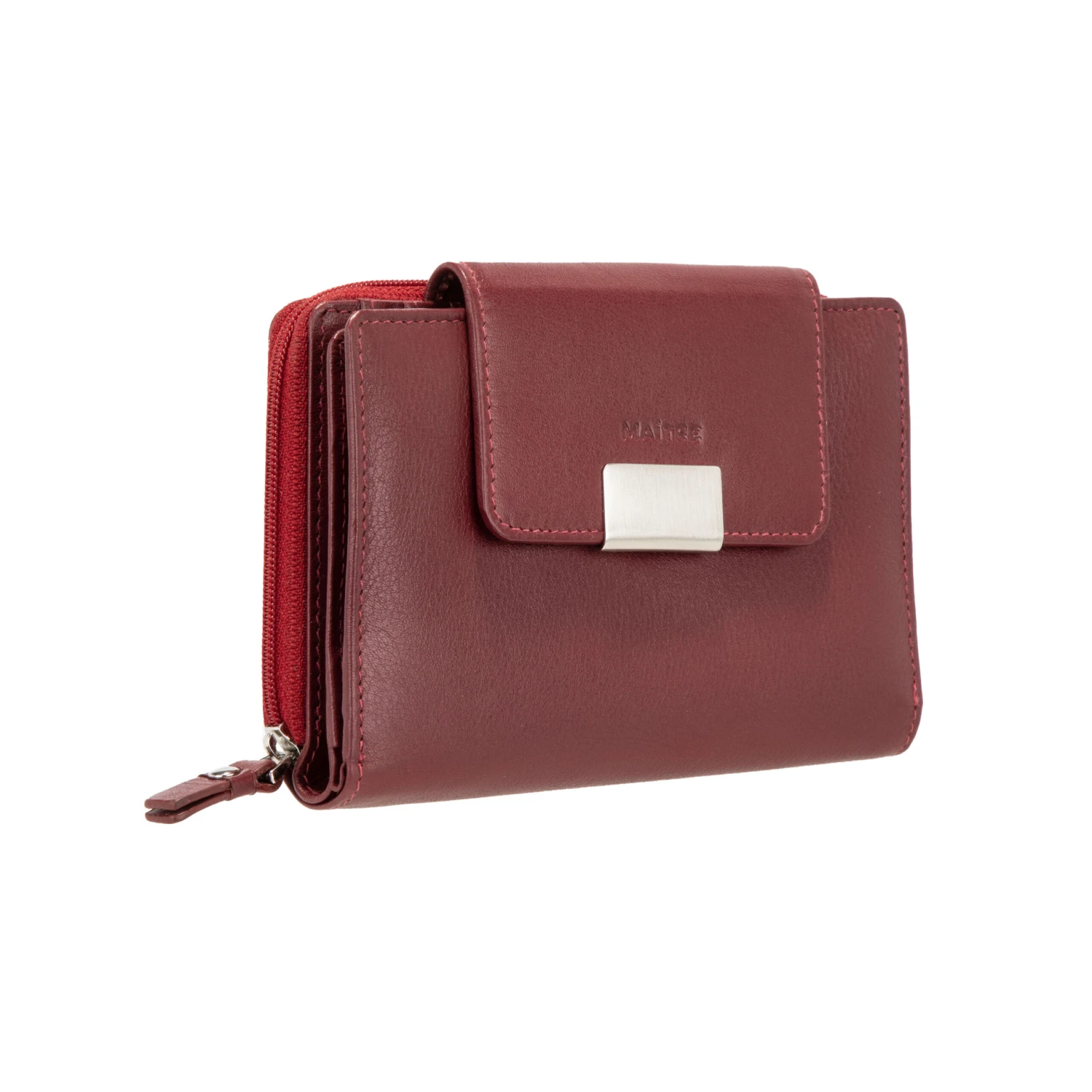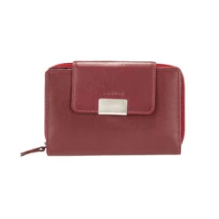 Das große Metalllogo in mattem Silber und das weiche Nappa Leder sind der Kern der Line „Helena“. Die vielen Fächer sind mit RFID Schutz ausgestattet.