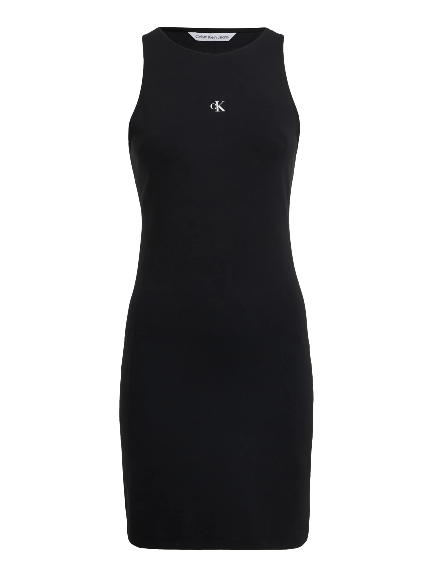 Erleben Sie zeitlose Eleganz mit modernem Twist: Dieses ärmellose Milano-Jersey-Kleid von Calvin Klein besticht durch sein tailliertes Design und bietet mit seinem Premium-Stretchstoff aus 66% nachhaltiger Viskose, 30% Polyamid und 4% Elasthan ein komfortables Trageerlebnis. Das raffinierte Cut-Out-Detail am Rücken verleiht dem Kleid eine außergewöhnliche Note, während der verdeckte Reißverschluss an der Seite für eine nahtlose Silhouette sorgt. Abgerundet wird der Look durch das Calvin Klein Monogramm-Logo auf der Brust, welches das Kleid zu einem echten Blickfang macht.