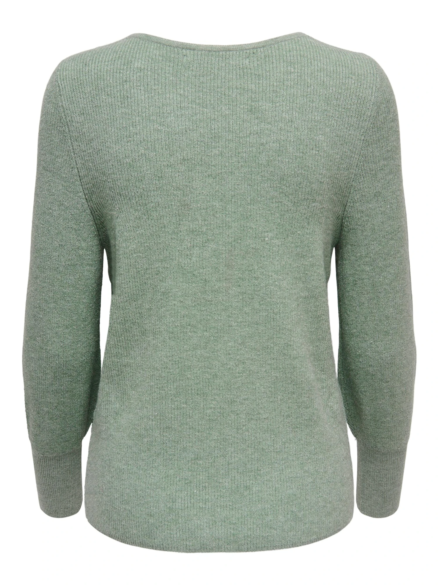 – Einfarbiger Strickpullover- V-Ausschnitt- Lange Ballonärmel- Gerippte Säume- Länge: 62 cm in Größe S- Das Model trägt Größe S