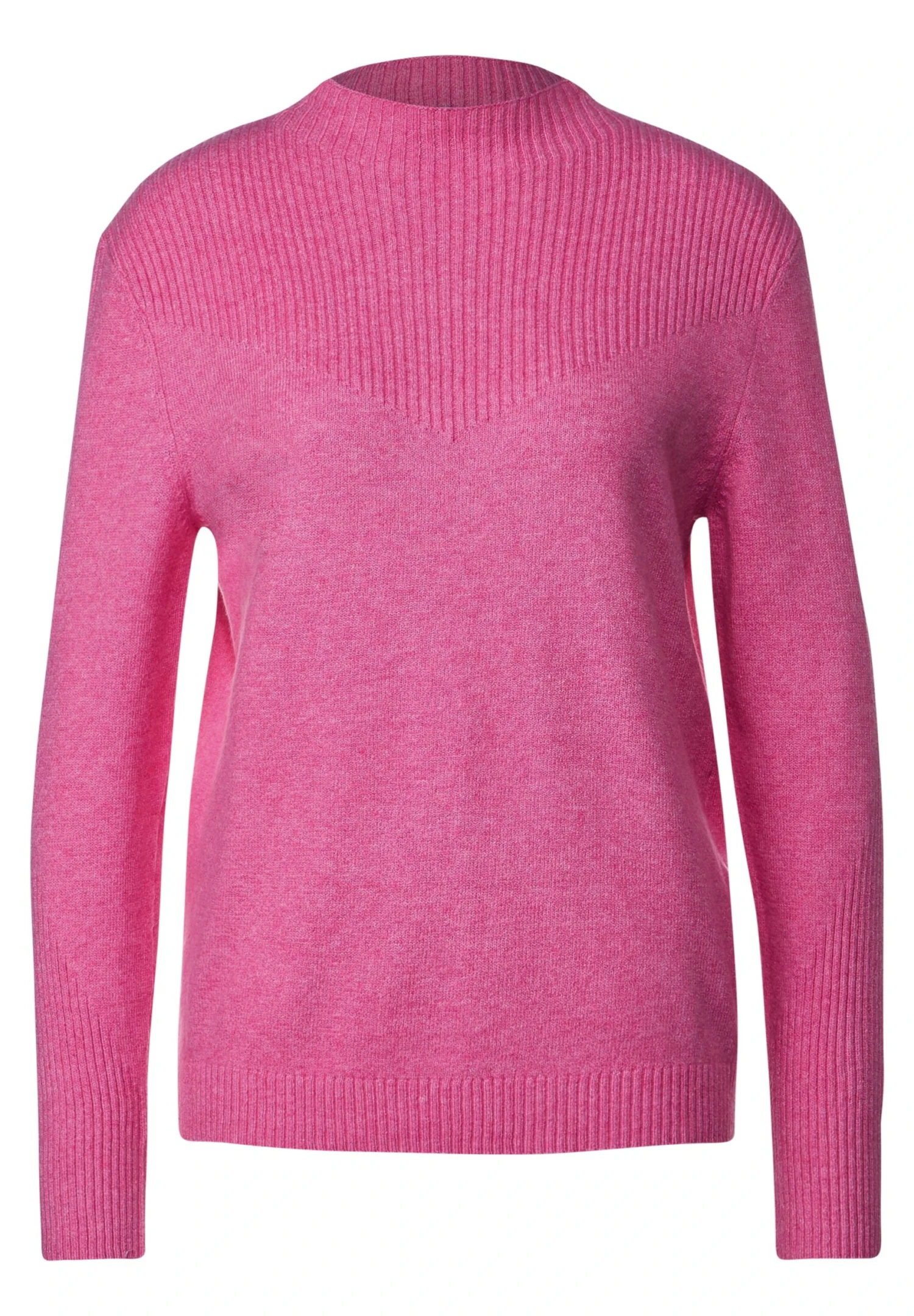 Street One Damenpullover, Stehkragen, Rippstrick Details, Langarm, Melange Optik
