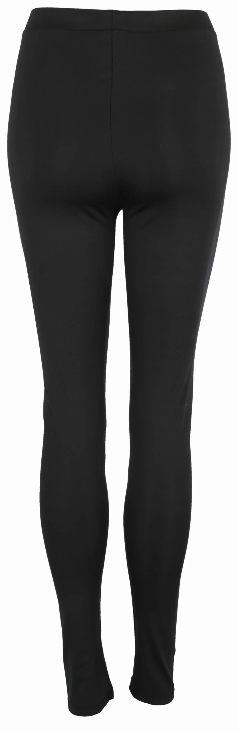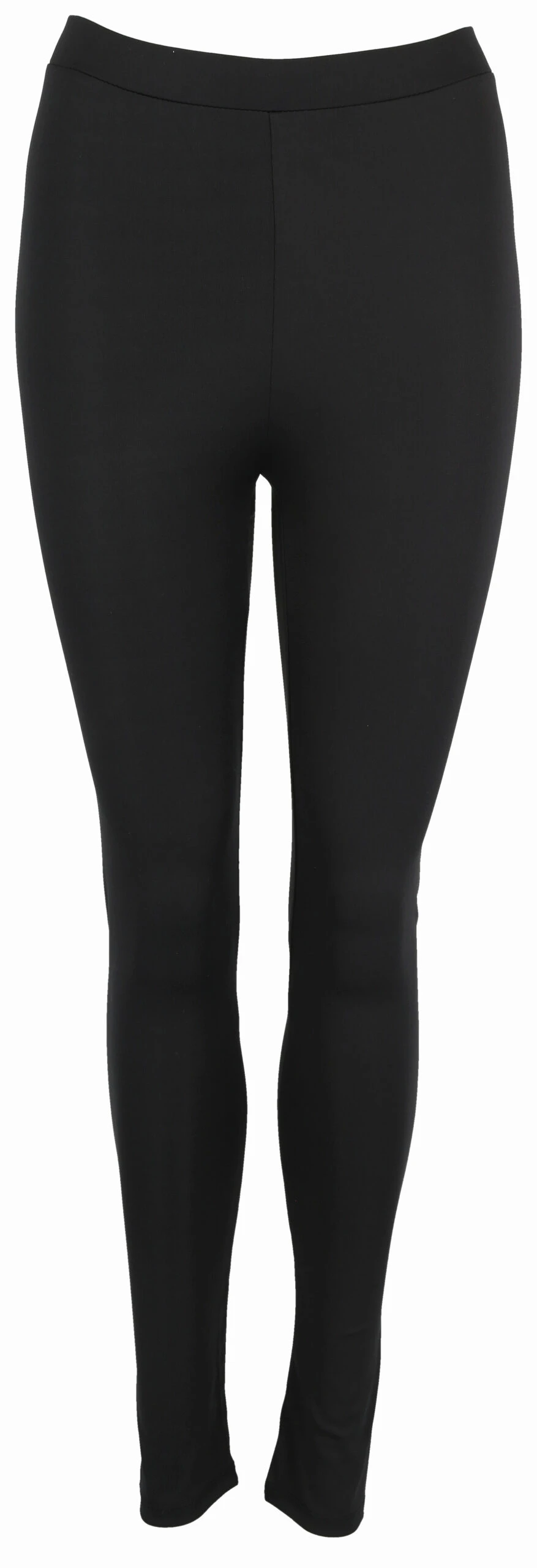 Leggings aus Jersey mit normalen Taille. Die Leggings sind schwarz und haben figurbetonte Passform. Sie haben ein weiches Gummiband in der Taille und eine lange Beinlänge.