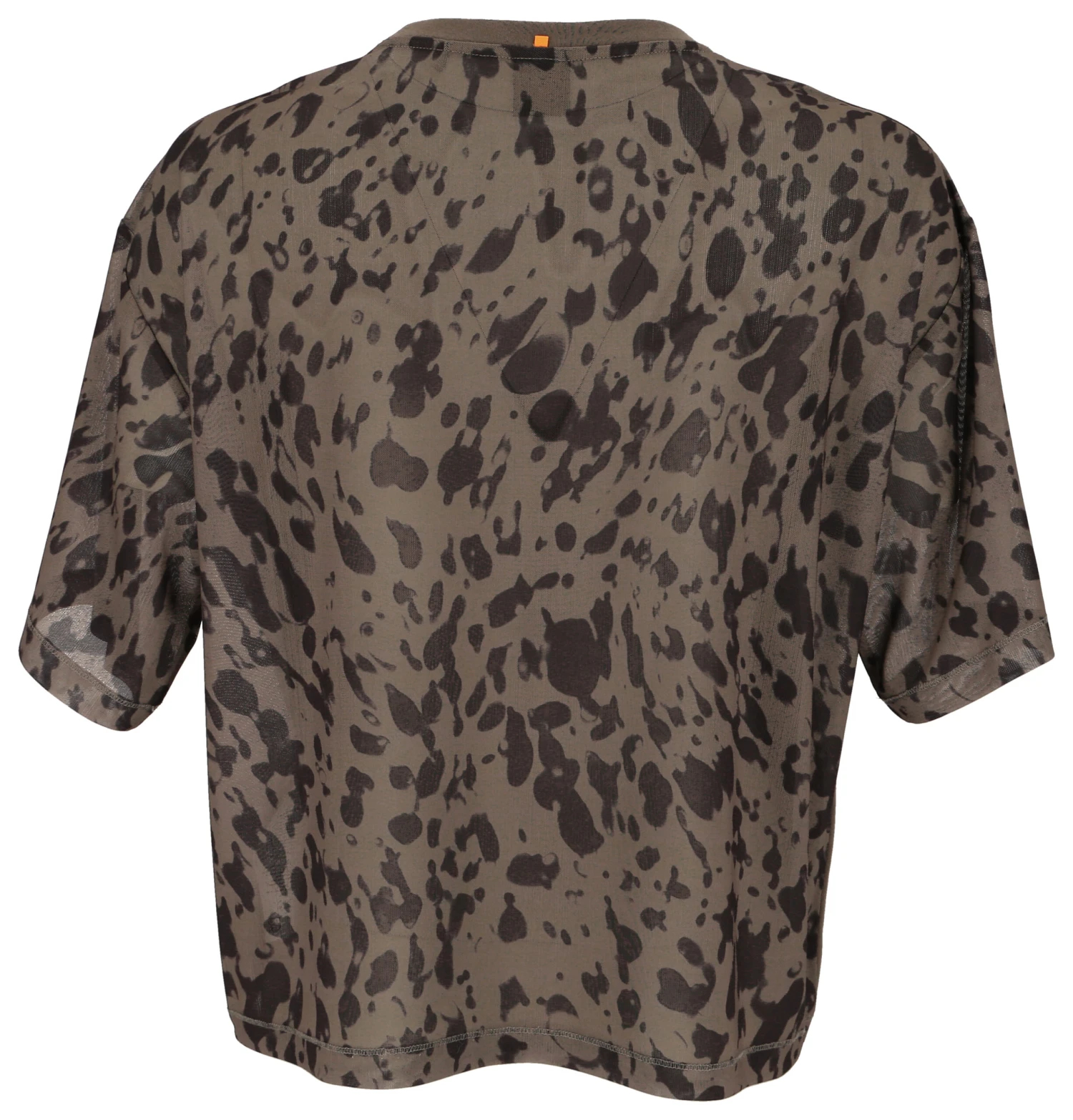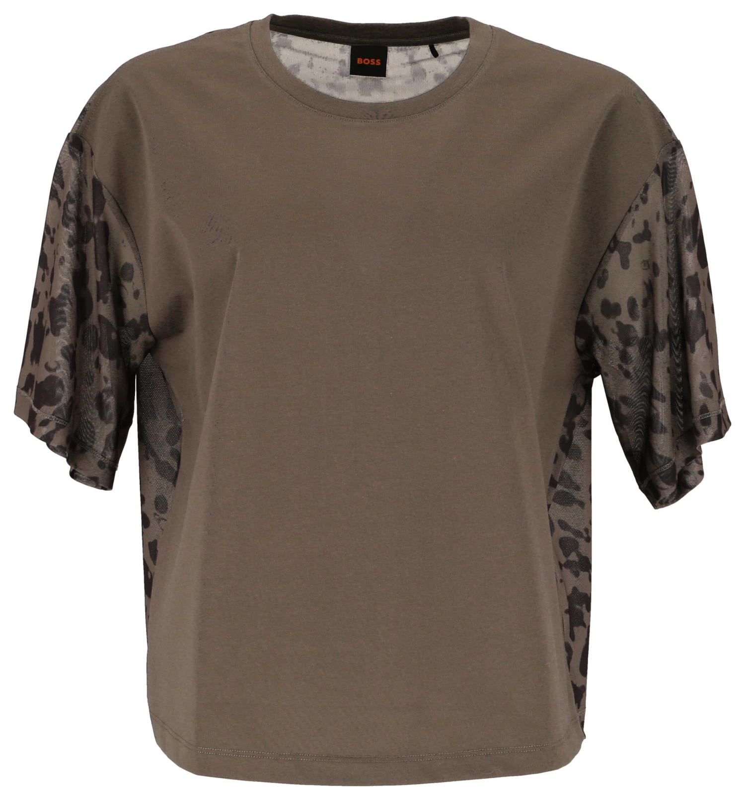 Dieses stilvolle Damen-Shirt von BOSS kombiniert Eleganz mit Komfort für den Alltag. Gefertigt aus einer hochwertigen Mischung aus Polyamid und Lyocell, bietet es ein angenehmes Tragegefühl und Atmungsaktivität. Die Ärmel und Rückenpartie heben sich mit einem trendigen Muster ab, das aus einer weichen Polyester-Elasthan-Mischung besteht. Dieses Shirt ist eine ideale Wahl für Damen, die Wert auf Qualität und Design legen.