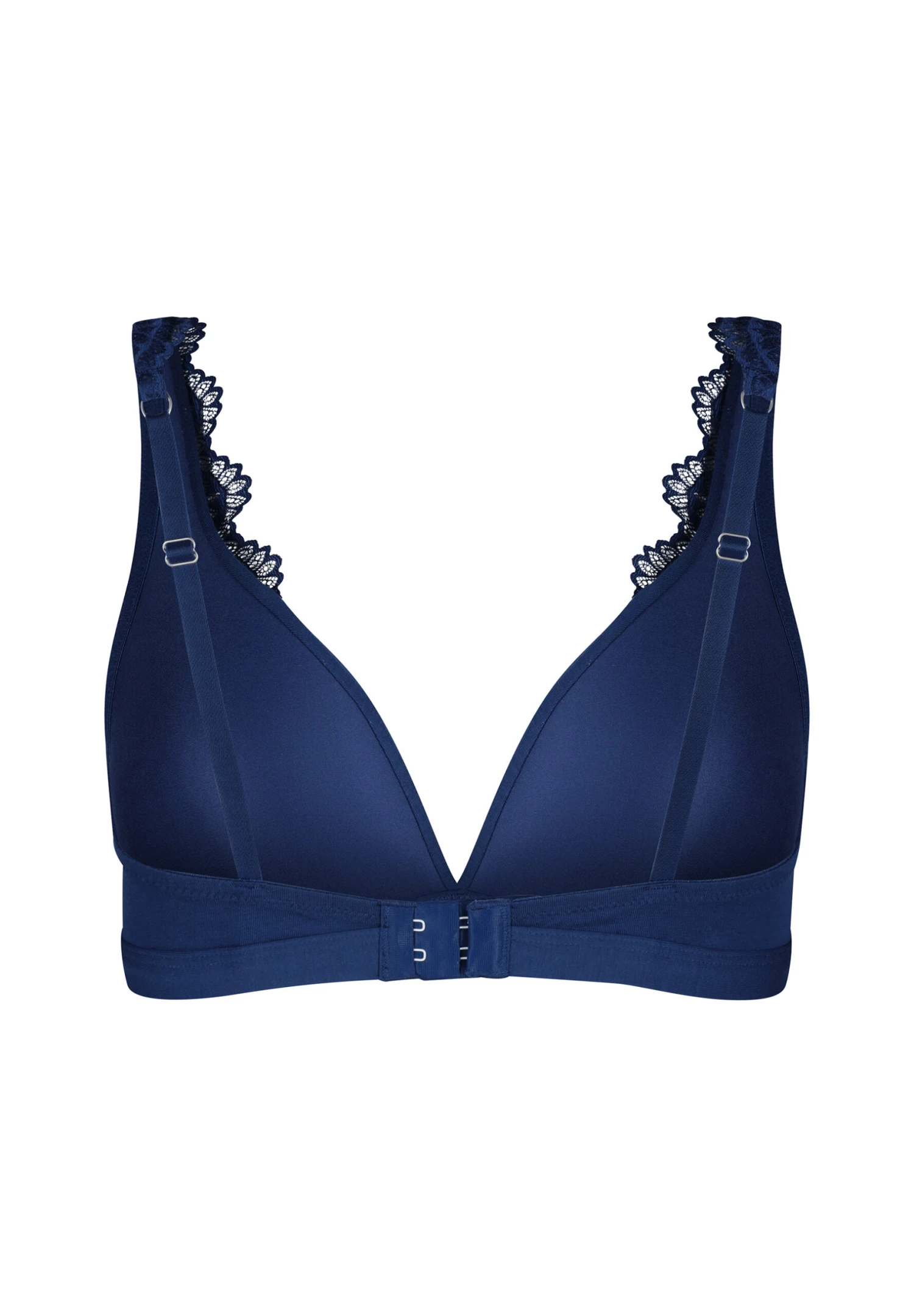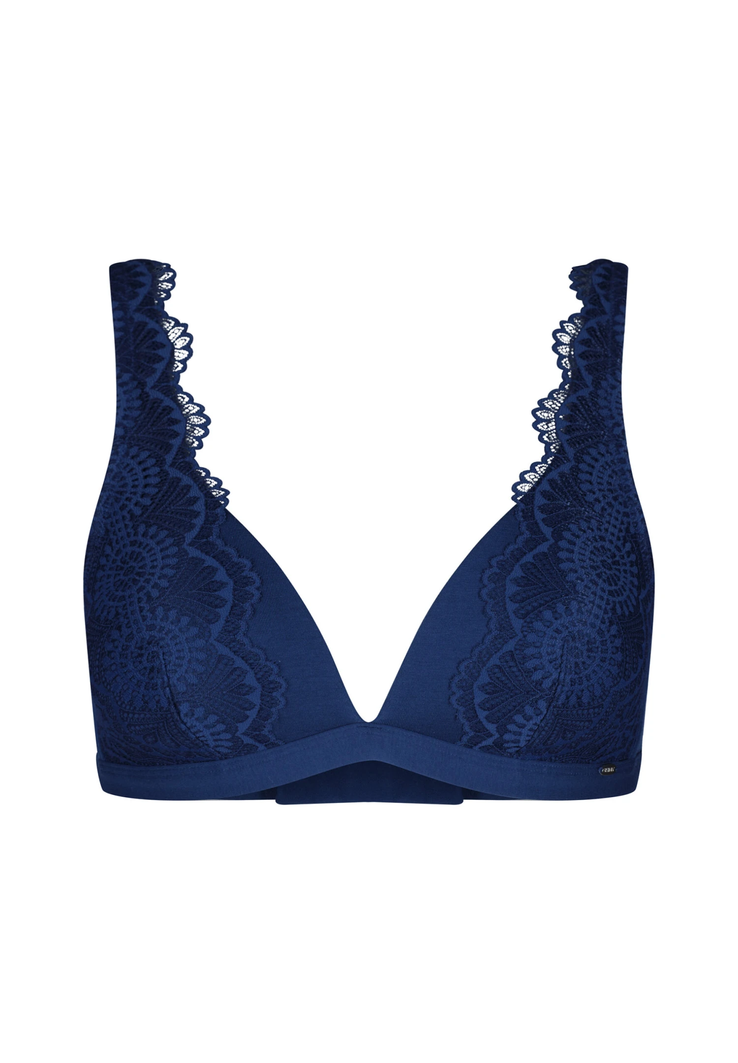 Triangel-BH ohne BügelFeminine Spitze an den Cups und TrägernHochwertige, weiche Baumwolle an den CupsSeitenteil des BHs aus Baumwoll-StretchElastisches Unterbrustband gibt perfekten Halt