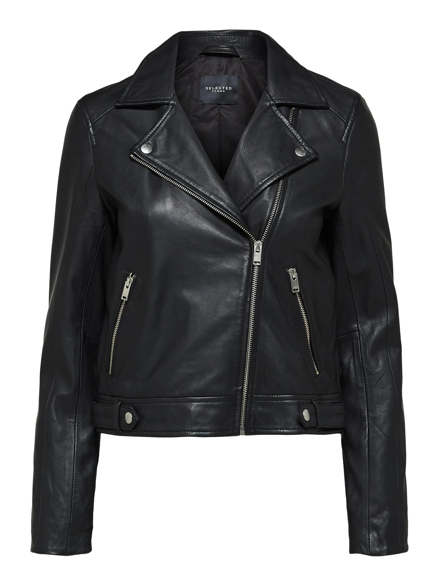 Eine Lederjacke kommt nie aus der Mode. Diese hier besteht aus weichem Lammleder und punktet mit allen bewährten Details: Der Frontreißverschluss passt zu den Reißverschlüssen an den Ärmeln und Taschen und die Knopfdetails am Revers ergänzen die Druckknöpfe an den Laschen des Saums. Die Jacke hat einen Cropped Fit und passt deshalb am besten zu Hosen oder Röcken mit High Waist. Kombiniere sie mit einem geblümten Minikleid und Lederstiefeln zu einem trendigen Freizeitlook.- Fallendes Revers mit Knopfdetail- Frontreißverschluss- Lange Ärmel mit Reißverschluss an den Bündchen- Seitentaschen mit Reißverschluss- Laschen mit Druckknopf am Saum- Nahtdetails- Cropped Fit- Regular Fit