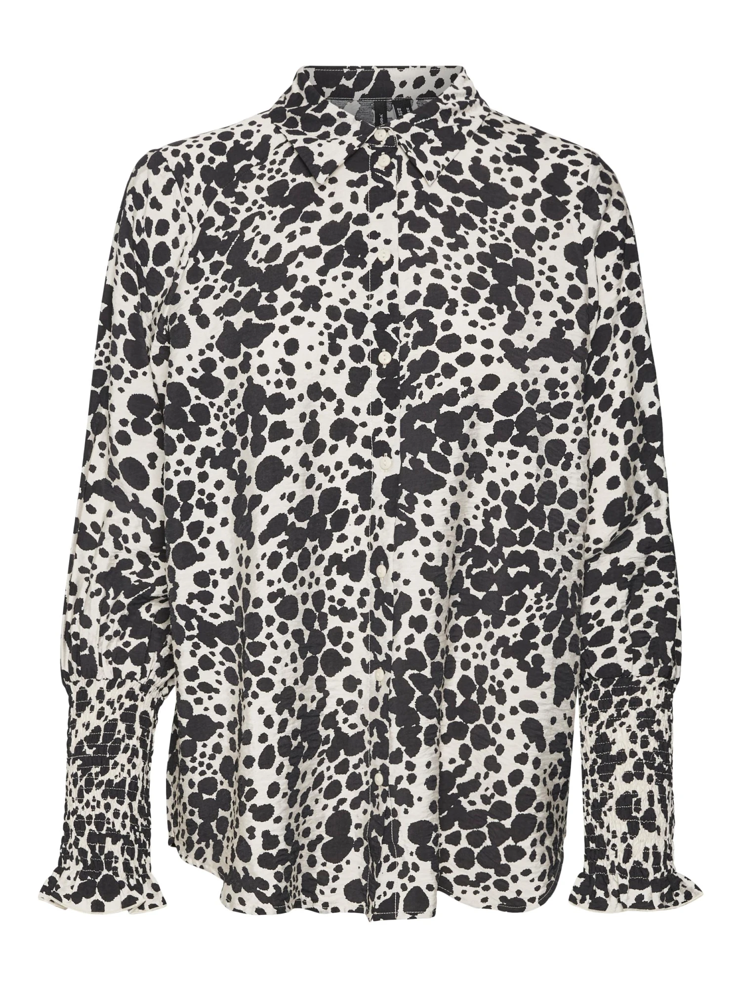 Diese Bluse ist ein schicker und vielseitiger Neuzugang in deinem Kleiderschrank, denn du kannst sie entweder offen über einem schlichten Oberteil oder geschlossen tragen. Kombiniere sie mit einer klassischen Jeans und einem schlichten T-Shirt zu einem coolen Alltagslook oder style sie schicker, indem du dazu eine Anzughose und Absatzschuhe trägst. – Produkttyp : Hemd – Neck : Hemdkragen – Ärmel : Langarm – Ärmel : Weite Ärmel – Manschetten : Lange Bündchen – Verschluss : Knopfleiste – Details : Rüschen – Passform : Normal geschnitten