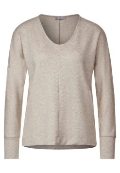 Shirt von Street One, Zweifarbige Struktur, Abgerundeter V-Ausschnitt, Viskose Mix, Lange Ärmel